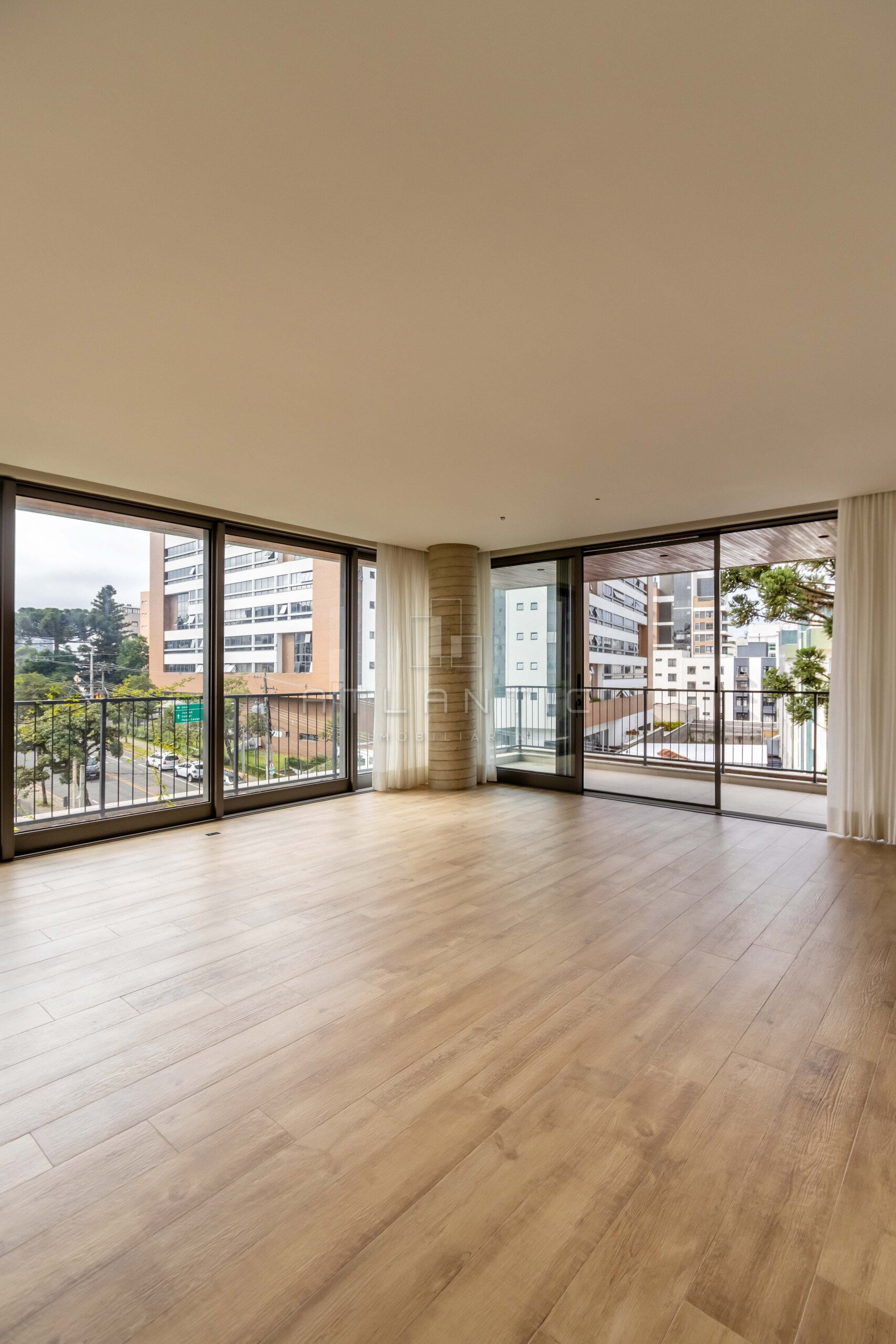 A planta oferece 3 suítes, sala para dois ambientes, varanda com churrasqueira a carvão e vista privilegiada para o Museu Oscar Niemeyer, além de cozinha, lavanderia, lavabo e 3 vagas de garagem.