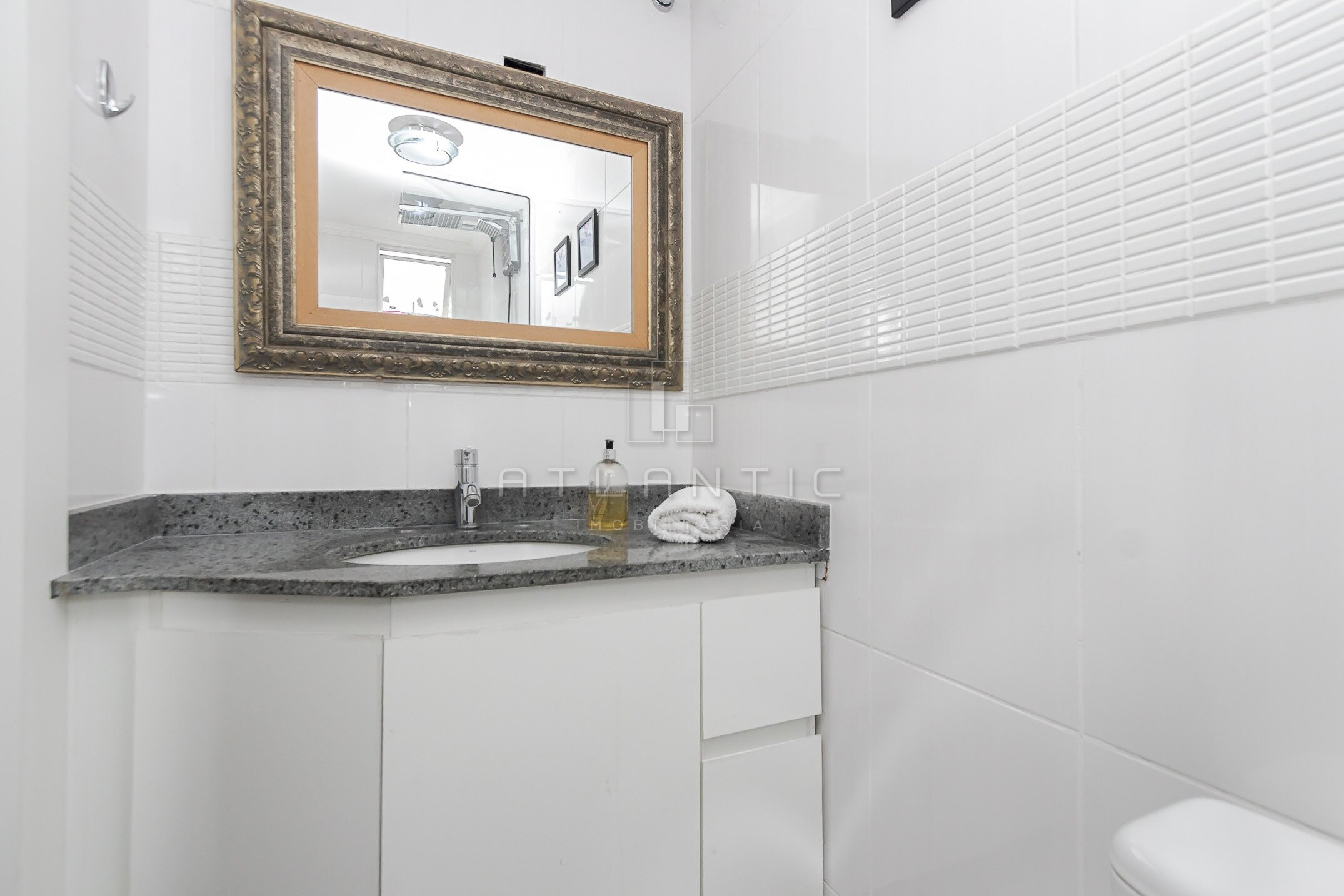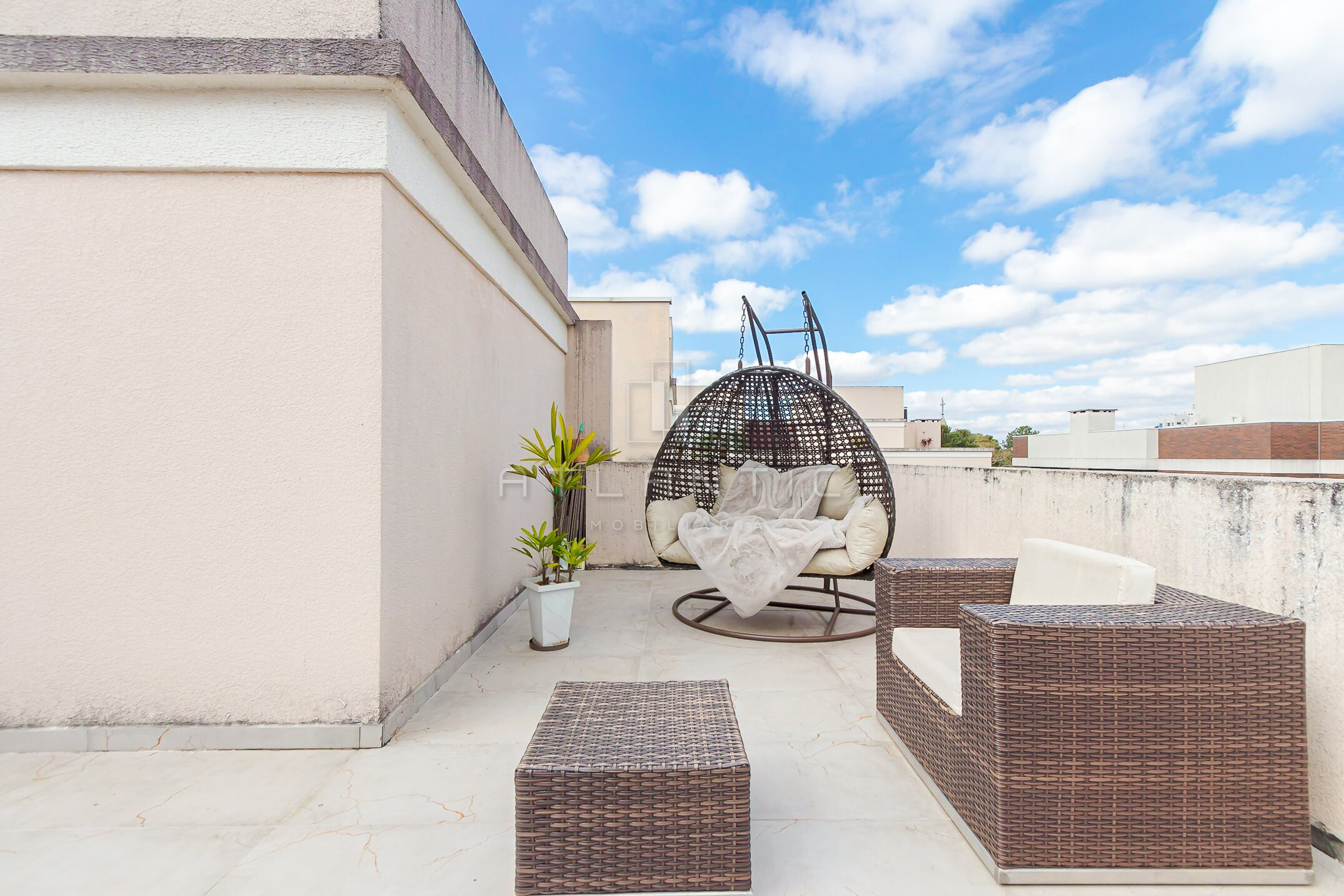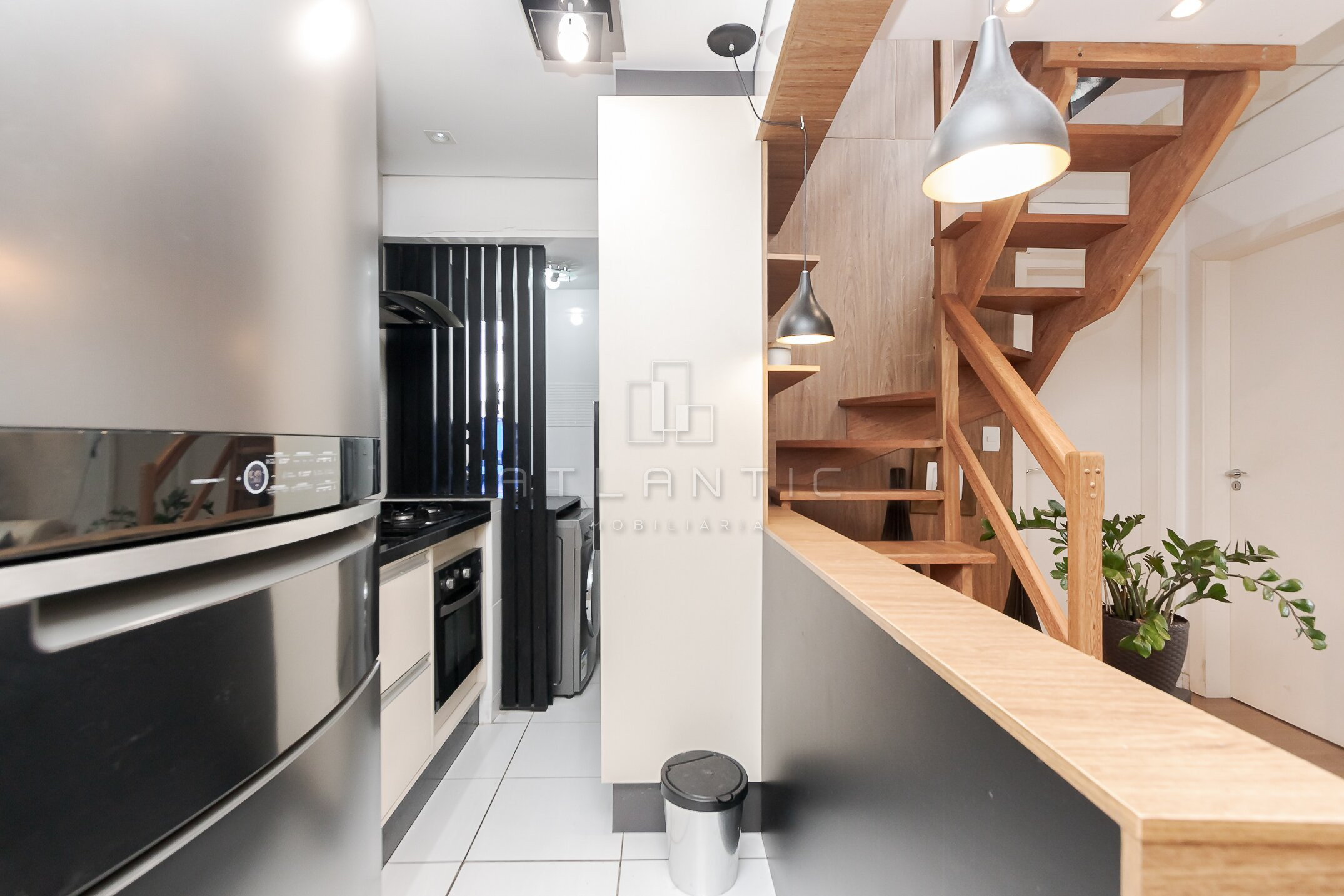 São 100m² de área privativa, sendo 32,80m² de área descoberta, muito bem distribuída. No piso inferior são 2 suites, 2 banheiros, sala de estar, sacada com churrasqueira, cozinha e lavanderia.